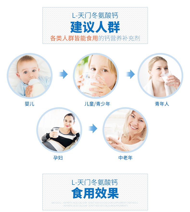 天門冬氨酸 鈣是第三代鈣源,是傳統(tǒng)鈣3倍的吸收率,3秒速溶,溶解性高,無需維生素 d3輔助吸收,吸收率高達95%,溫和不傷胃,納米級純原粉 。