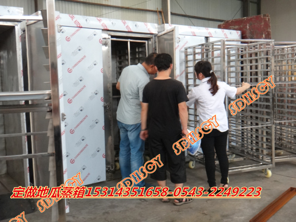 雙門(mén)36層不銹鋼蒸柜,帶4個(gè)蒸車,每層放2個(gè)盤(pán)子,一次可放72個(gè)盤(pán)子,一共144個(gè)盤(pán)子,4個(gè)蒸車可以交替使用,可供800人吃飯,非常適合工廠食堂、饅頭房等