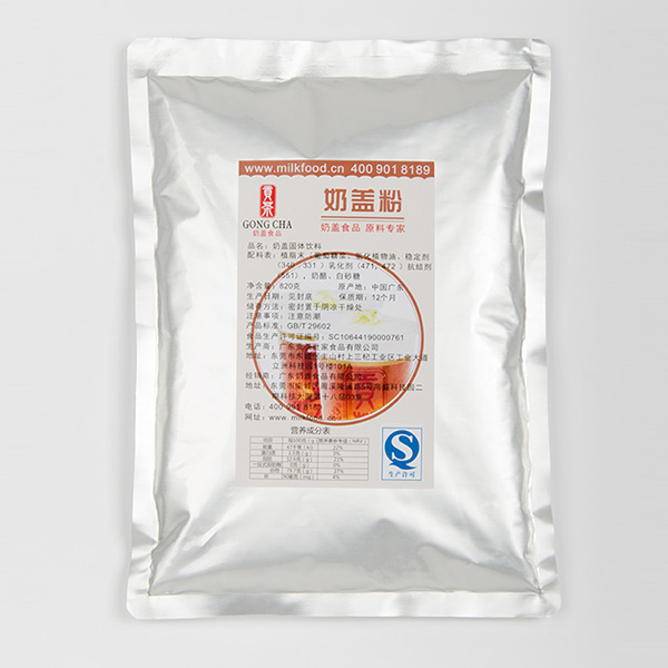 廣東奶蓋食品生產(chǎn)的奶蓋粉 是由最正宗的臺灣奶蓋粉 生產(chǎn)工藝與配方,精選優(yōu)質(zhì)的進口起司原料進行獨特配制而成。它的口感非常細膩飽滿,綿密順滑,不消泡,濃濃的起司味加上淡淡玫瑰鹽 ,濃香而不膩,是制作奶蓋茶的理想選擇。