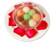 湯圓糯米粉等做的球形食品,大多有餡兒,帶湯吃。有的地區(qū)叫湯團(tuán)。
