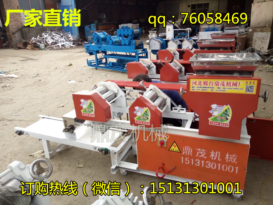 鼎茂牌系列mt6-260面條機是幾組對輥連續(xù)輥壓,一次成型原理設(shè)計制造的,它有電機,減速機裝置,傳動裝置,兩組供料粗壓輥,一組合片軋實軋輥,一組軋實輥,一組軋光輥組成。該機組的配套設(shè)備是:拌面機與和面機。將和好的面坯倒在主機上面的料斗內(nèi),自動喂給粗軋輥,壓出兩塊面板,然后合并進入合片軋實輥,在通過面槽引入第三道軋輥,壓實壓薄,進入壓光輥內(nèi),精壓軋光,面片通過模具一次成型。面片的厚薄是靠手輪調(diào)整器來調(diào)整,面片跑偏說明兩輥間隙不一致,應(yīng)調(diào)整兩端手輪,使其均勻即可。精壓輥光輥的間隙大與小和面片的厚薄相關(guān),可根據(jù)當(dāng)?shù)匦枰M行調(diào)整。本機采用鏈條、鏈輪傳動,傳動部分為變速箱結(jié)構(gòu),持久耐用,并附加全自動回皮裝置,減少了操作者的勞動強度,增加了功效。