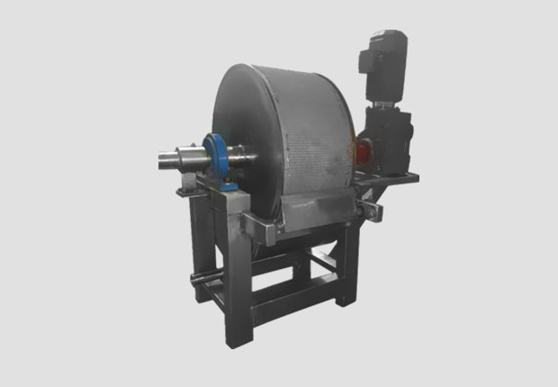 水平旋轉(zhuǎn)滾筒的多孔表面覆有一層一定目數(shù)的不銹鋼濾網(wǎng),在濾網(wǎng)與多孔筒殼間裝有支撐網(wǎng),旋流滾筒穿過濾槽,濾槽內(nèi)裝有一定液面高度的須脫水的淀粉 乳液。通過真空泵與脫水機(jī)真空管的連接,使之滾筒內(nèi)壓降到200兆巴左右,滾筒內(nèi)部與外部(大氣)之間的壓差作用,液體穿過濾網(wǎng)并到達(dá)滾筒內(nèi)部并排出。淀粉 乳液中的固體(淀粉 )不能穿過濾網(wǎng)并停留滾筒表面,在滾筒面再次浸入淀粉 乳液之前,刮刀連續(xù)不斷地將固體(淀粉 )從旋轉(zhuǎn)滾筒表面刮下,并落入輸送機(jī)進(jìn)入下道工序。