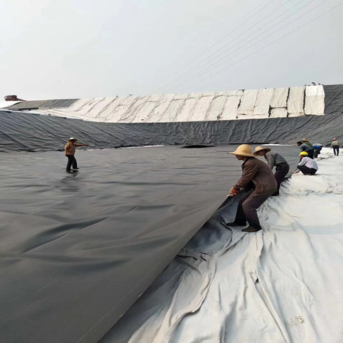 6. 防滲膜在鋪設(shè)中,應(yīng)避免產(chǎn)生人為褶皺,溫度較低時,應(yīng)盡量拉緊,鋪平。