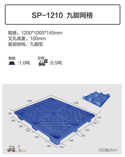 型號(hào):1210九腳網(wǎng)格塑料托盤