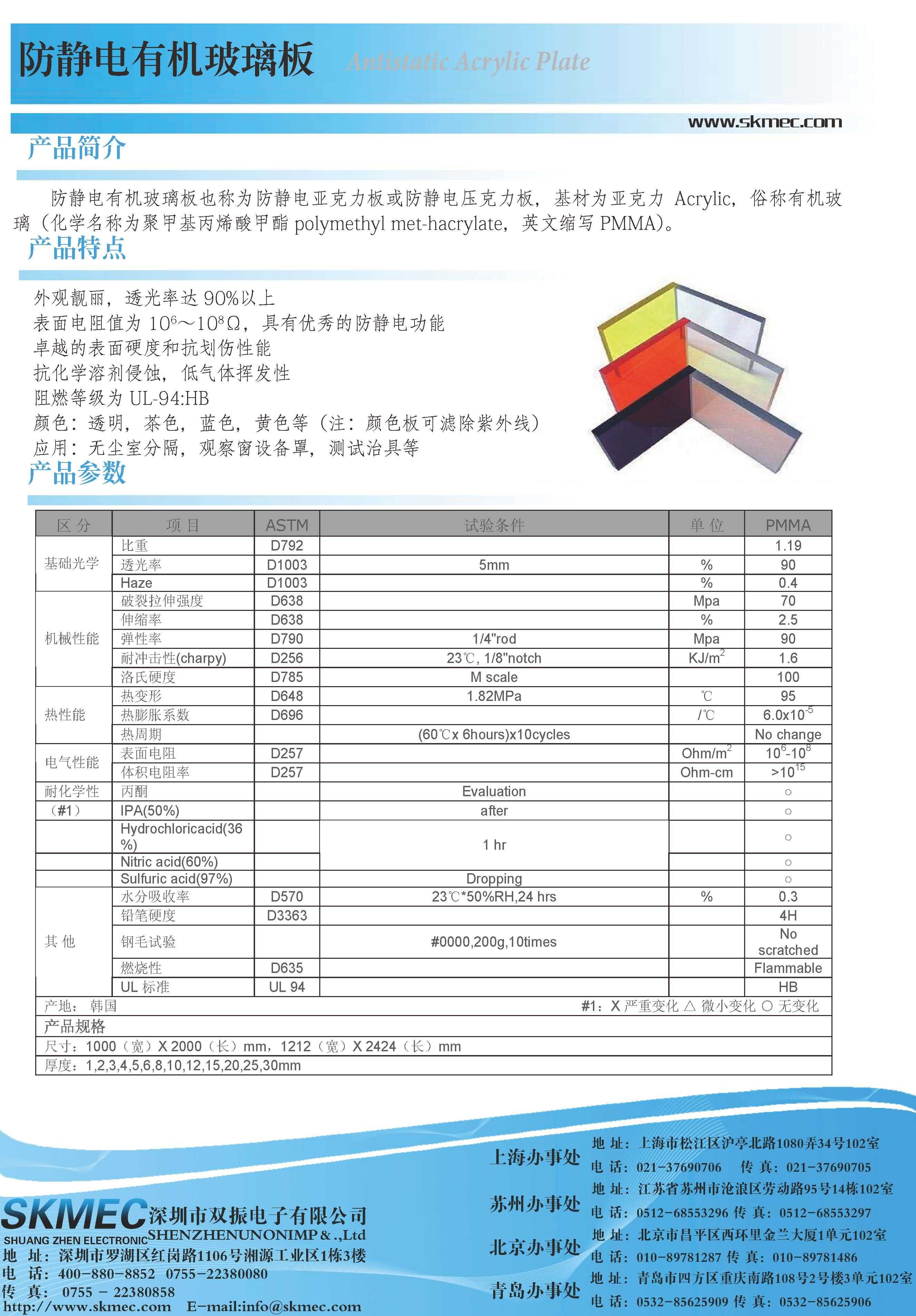 雙振專業(yè)供應(yīng)防靜電壓克力板特性: