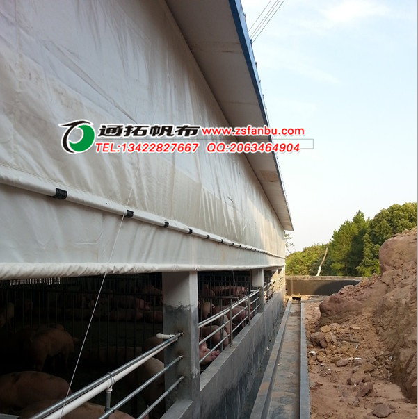 河北養(yǎng)殖卷簾廠直銷張家口養(yǎng)鴨棚卷簾布、張北縣防風(fēng)豬場(chǎng)卷簾篷布是中山通拓帆布廠專業(yè)定做(歡迎來(lái)電咨詢:13422827667,通拓帆布-黃生)。用帆布制作的河北豬場(chǎng)卷簾,使用輕便、耐用,壽命達(dá)到8~10年;防風(fēng)防水,起到防寒保暖的作用,是河北各大養(yǎng)殖場(chǎng)不二選擇。 河北豬場(chǎng)卷簾布從半成品到產(chǎn)品經(jīng)過(guò):織布~涂塑~烘干~開(kāi)料~熱合~裁剪~(yú)車(chē)邊~打孔~打包等工序精制而成。本產(chǎn)品較大特點(diǎn)具有防水~防曬~防霉~防塵~防潮~防老化~耐磨~耐撕拉使用壽命長(zhǎng)等特點(diǎn)。本品具有防水、透光、防霉、耐寒、耐老化、防靜電等性能;且本產(chǎn)品斷裂強(qiáng)力、撕裂伸長(zhǎng)率、撕破強(qiáng)力大大優(yōu)于傳統(tǒng)篷布;表面進(jìn)行特殊處理起防滑作用,是養(yǎng)殖行業(yè)通用的防水用布,可根據(jù)客戶長(zhǎng)寬定做,且幅寬特大,加工成品時(shí)能減少拼縫提高品質(zhì),可用熱封拼接,免去縫制漏水之憂。并可根據(jù)用戶需要定做不同功能、不同顏色、不同厚度的產(chǎn)品。