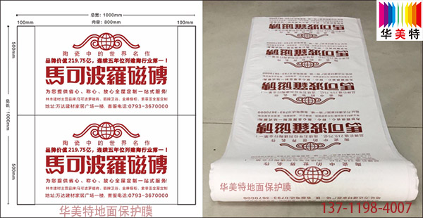 舉個(gè)更大膽的例子,有些客戶是要印制印字在地面地板保護(hù)膜上的,底色選好、需要印刷公司信息也有了,華美特設(shè)計(jì)師就幫客戶免費(fèi)設(shè)計(jì),多種方案供客戶選擇。敲定好設(shè)計(jì)版面,投入生產(chǎn)印刷中。話不多說,有圖有真相。是不是100%還原印刷版面,裝修地板保護(hù)膜排版對(duì)比成品圖,一點(diǎn)色差都沒有。