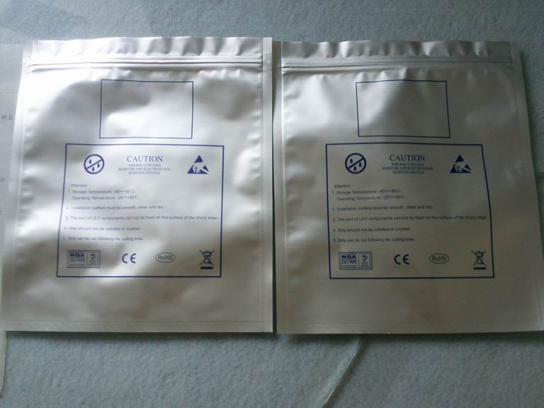 防靜電鋁箔防潮袋:具有防靜電,防電磁干擾,防潮三大功能,法拉第電籠構(gòu)造,屏蔽阻隔平均可達(dá)60db,靜電保護(hù)功能強(qiáng)大,內(nèi)層為純金屬鋁構(gòu)成,電阻率低于0.1ω,四層結(jié)構(gòu)復(fù)合能力強(qiáng),封口牢固,具有良好的防水,阻氧,避光,耐穿刺,該產(chǎn)品適用于有防潮要求的電子產(chǎn)品包裝:各類pc板,ic集成電路,光驅(qū),硬盤,以及化學(xué)原料和生物中間體的真空包裝等,表面電阻值108-1010ω