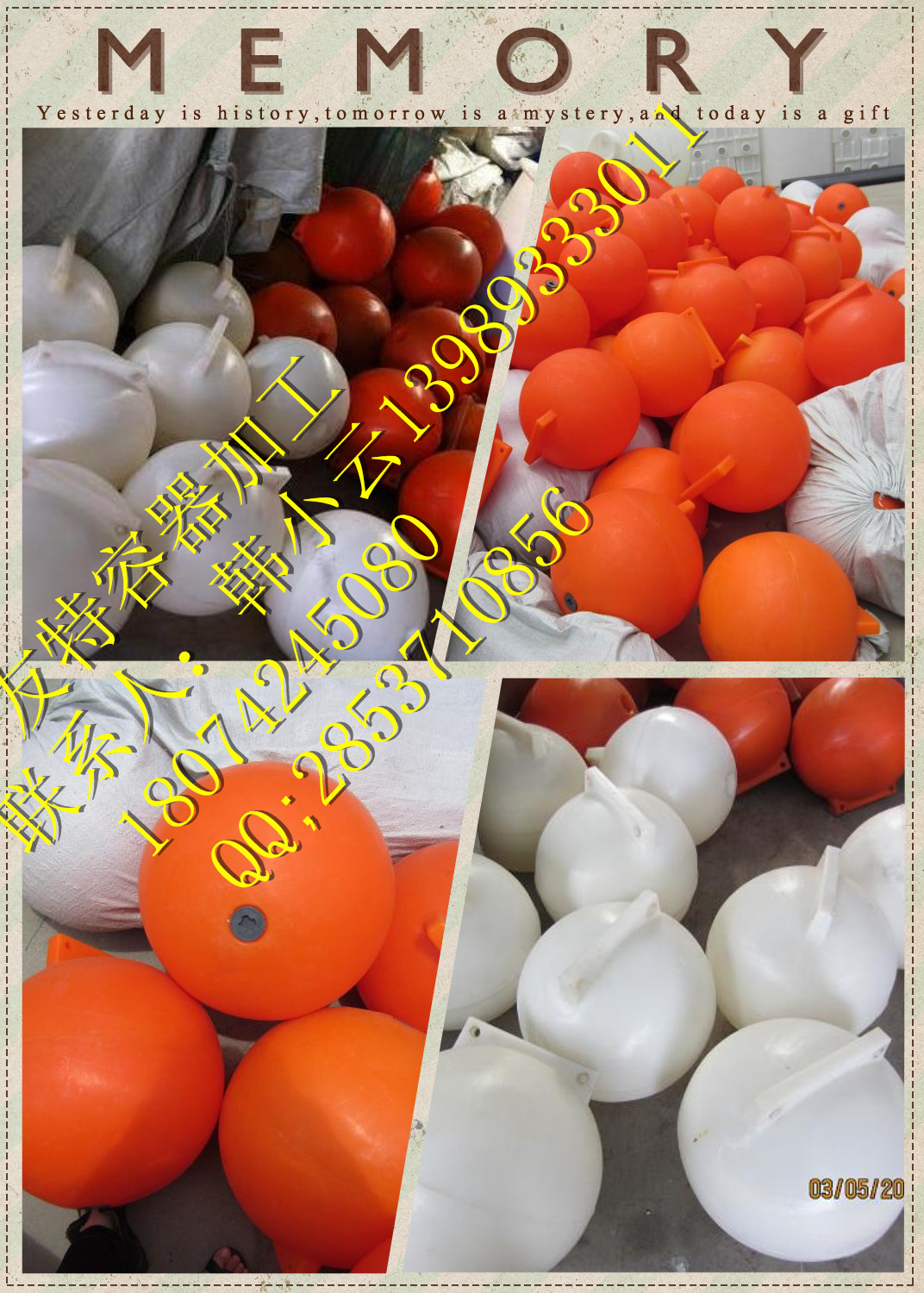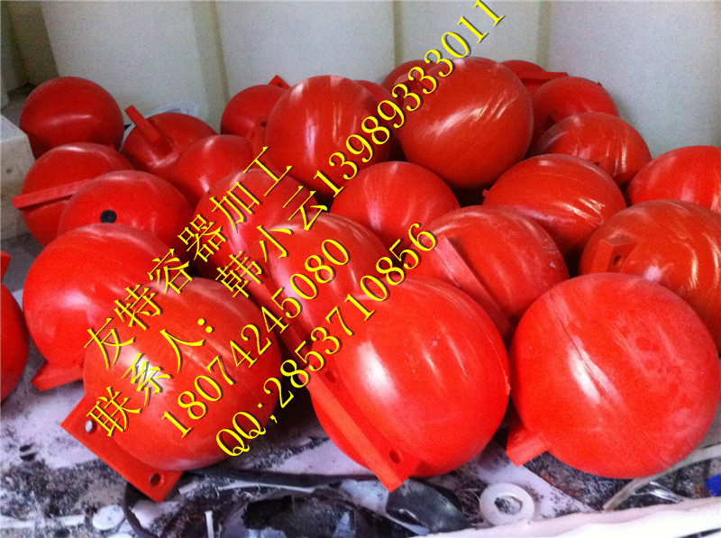 海上浮筒制造廠家——慈溪市友特塑料容器公司,最近大量加工生產(chǎn)的產(chǎn)品其中一類是水上浮筒,圓形浮球,球狀浮球,圓柱狀浮球,稱頭形狀浮球,尖底浮筒,兩半球形狀浮體。浮體類的產(chǎn)品形狀各異,因客戶要求開發(fā)。產(chǎn)品均采用韓國進(jìn)口全新料聚乙烯(lldpe)原料制作,產(chǎn)品耐酸 耐堿 ,耐老化,耐腐蝕。