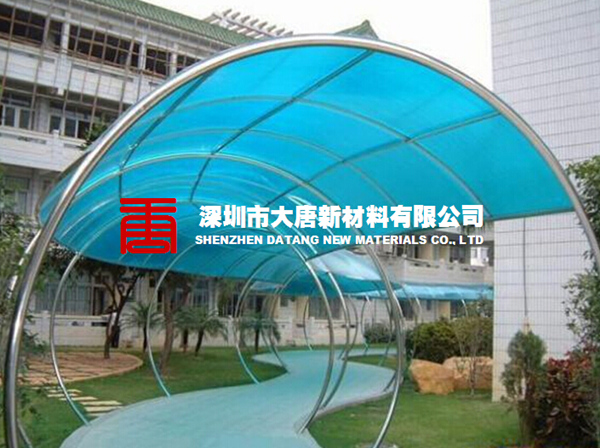 2、藝術性:除了一般雨蓬不可比擬的實用、耐用、遮風擋雨的功能外,陽光板、耐力板雨蓬更是一座雕塑,一件藝術品,給人美的視覺享受。