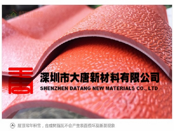 合成樹(shù)脂瓦是運(yùn)用高新化學(xué)化工技術(shù)研制而成的新型建筑材料,具有重量輕、強(qiáng)度大、防水防潮、防腐阻燃、隔音隔熱等多種優(yōu)良特性,普遍適用于開(kāi)發(fā)區(qū)平改坡、農(nóng)貿(mào)市場(chǎng)、商場(chǎng)、住宅小區(qū)、新農(nóng)村建設(shè)、高檔別墅、雨篷、遮陽(yáng)篷、仿古建筑等。