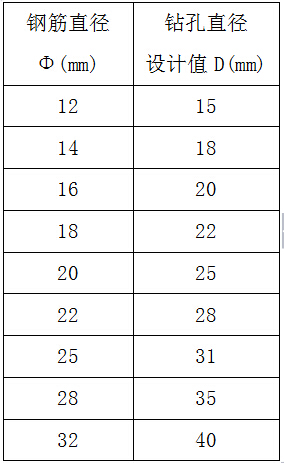 鋼筋直徑與對應的鉆孔直徑設(shè)計值