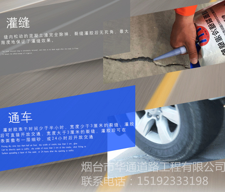 有了如此功能強大的華通混凝土道路冷灌縫膠,公路人員何樂而不為呢。選購華通冷灌縫膠您多了一份選擇,我們多了一次機會,您節(jié)約了成本,我們給您帶來切身利益。歡迎各界領導蒞臨我們?nèi)A通公司考察或來電咨詢?nèi)A通公司小姚愿意竭誠為您服務,提供技術(shù)指導。