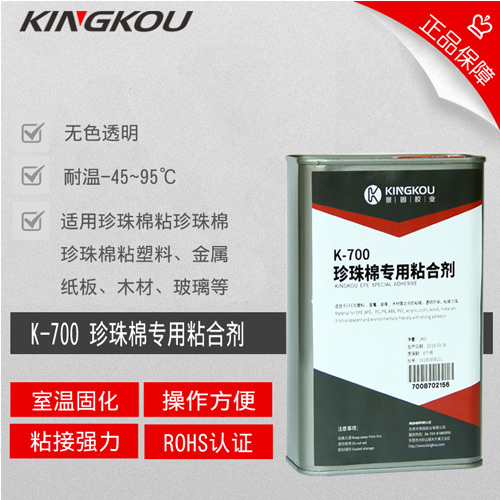 景固kingkou k-700 epe珍珠棉專用粘合劑 系景固膠業(yè)為取代熱熔膠粘接珍珠棉而研發(fā)的一款單組份,常溫固化粘合劑 ,完全避免了熱熔膠的高溫粘接、長(zhǎng)期變黃、強(qiáng)度低等缺點(diǎn)。使用方便,常溫粘接、固化后的膠層無(wú)色透明,無(wú)氣味、耐高溫、粘接強(qiáng)度高,可達(dá)基材破而不脫膠的效果。膠水通過(guò)rohs環(huán)保認(rèn)證!