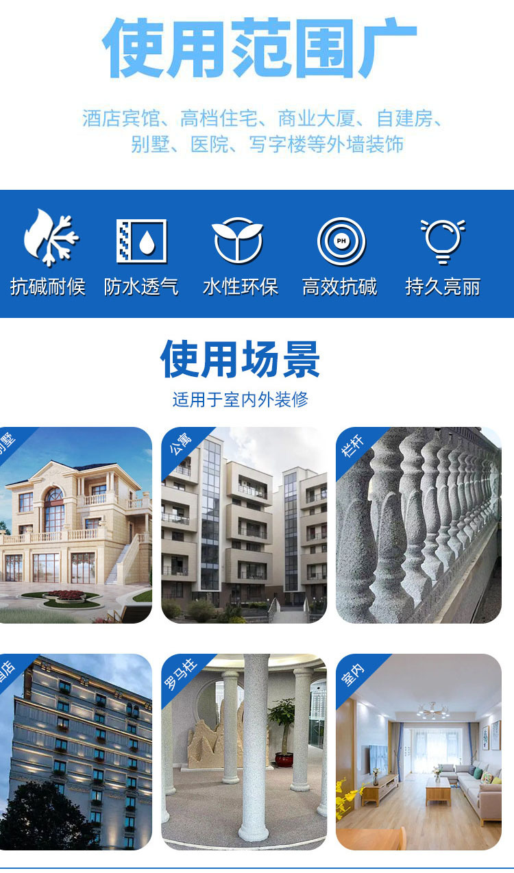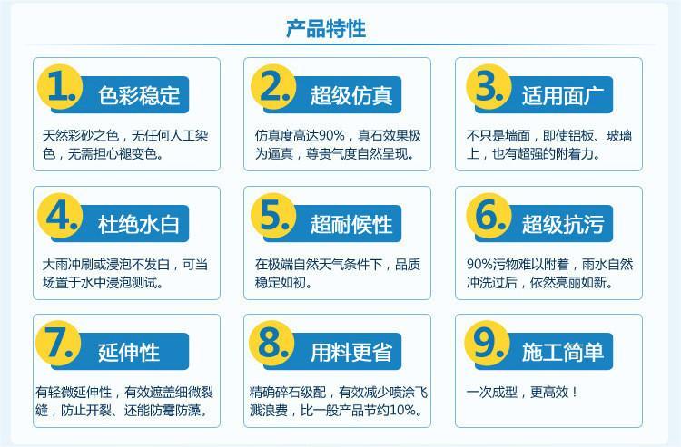 藍(lán)翠鳥仿石漆:復(fù)刻天然石材的藝術(shù)臻品藍(lán)翠鳥仿石漆以匠心工藝,將天然石材的紋理與色彩完美復(fù)刻于墻面。精選優(yōu)質(zhì)天然彩砂,配合環(huán)保水性配方,不僅呈現(xiàn)出逼真的石材質(zhì)感,更具備卓越的耐候性,無懼風(fēng)雨侵蝕、紫外線照射,長久保持墻面如新。無論是別墅外墻、商業(yè)建筑,還是鄉(xiāng)村自建房,藍(lán)翠鳥仿石漆都能賦予建筑獨(dú)特的藝術(shù)氣質(zhì),讓每一面墻都成為視覺焦點(diǎn)。