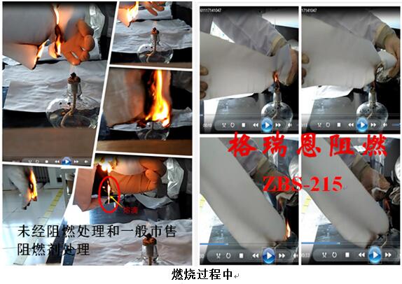 2、zbs-215阻燃劑 體系處理后的織物觸火可燃,燃燒火勢小,而普通阻燃劑 處理后的織物觸火時易燃,燃燒火勢大;