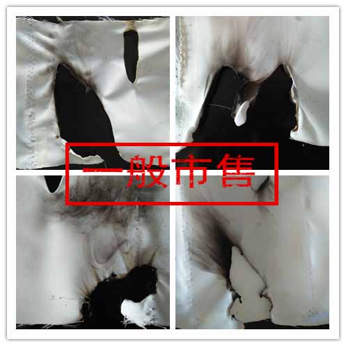 5、zbs-500阻燃劑 體系處理后的織物經(jīng)燃燒測(cè)試后布面上幾乎沒有黑色煙熏物,而普通阻燃劑 處理后的織物經(jīng)燃燒測(cè)試后布面上有大量黑色煙熏物。