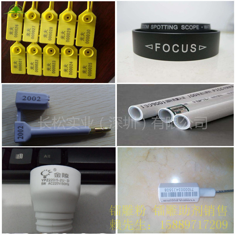 塑料產(chǎn)品激光打標(biāo)雕刻不上清晰的字跡必須要在塑料原料里加入我們公司的鐳雕粉 ,激光粉 ,加了激光粉 的塑料產(chǎn)品,白色和彩色塑料就可以雕出黑色字,黑色產(chǎn)品上可以雕出白色和金色字,彩色產(chǎn)品上可以雕出白色字,字跡清晰,打標(biāo)雕刻速度快!
