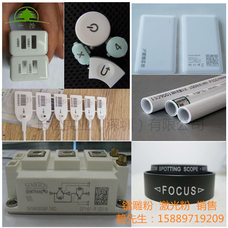通用型鐳雕粉 ,適用于:pp、abs、pe、pc、pa、pa6、pa66、pa12、pbt、pom、pmma、tpu、tpe、ppo、ps、hips、環(huán)氧樹脂等橡膠塑料樹脂。