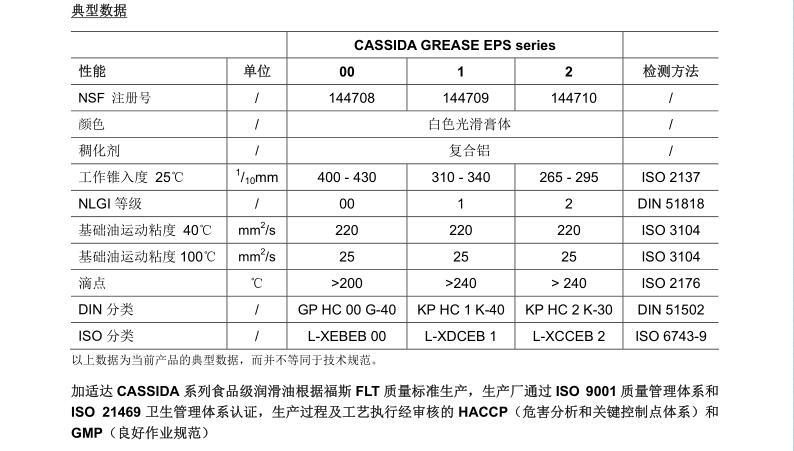加適達(dá)食品級(jí)潤(rùn)滑脂 eps 系列通過(guò) iso21469