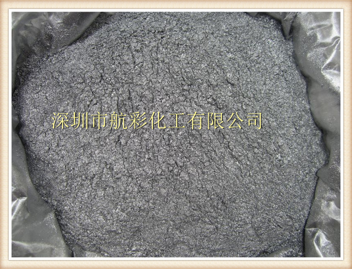 2)航彩顏料銀粉 粒子呈鱗片狀,其片徑與厚度的比例大約為(40:1)-(100:1),而且鋁粉 分散于載體后具有與低材平行的特性,許多粒子聯(lián)結(jié),大小粒子相互填補(bǔ)形成連續(xù)金屬膜。反射外來光線,具有極好遮蓋力。