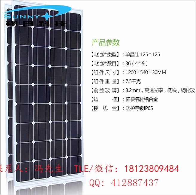 多晶硅太陽能電池板100w