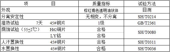 本品以石油的特定餾分為基礎油,加入多種進口、國產(chǎn)防銹劑 、脫水劑 等添加劑 ,采用特殊工藝精制而成。