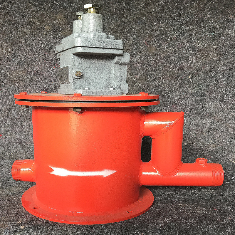 二、斷水保護(hù)裝置用于抽放管路等管道上實(shí)行缺水自動(dòng)斷電的保護(hù)裝置。本斷水保護(hù)裝置主要用于煤礦瓦斯抽放泵的斷水保護(hù),由礦用隔爆開關(guān)和水箱組成。當(dāng)瓦斯抽放泵的供水正常時(shí)水箱中的浮子浮起,斷水保護(hù)裝置,礦用微動(dòng)隔爆開關(guān)的隔爆微動(dòng)開關(guān)閉合,瓦斯抽放泵工作;當(dāng)循環(huán)供水不正常時(shí)水箱中的浮子落下,隔爆微動(dòng)開關(guān)打開,瓦斯抽放泵停止工作。由此,實(shí)現(xiàn)斷水保護(hù)。