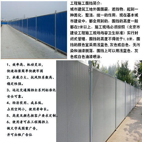 此圍擋適用于主城區(qū)、新市區(qū)、建成區(qū)和重要集鎮(zhèn)市政基礎(chǔ)建設(shè)新建、改建、擴建和大型維修養(yǎng)護工程、大型城市道路挖掘工程、城市道路基建占用和政府指定的養(yǎng)護挖掘工程。