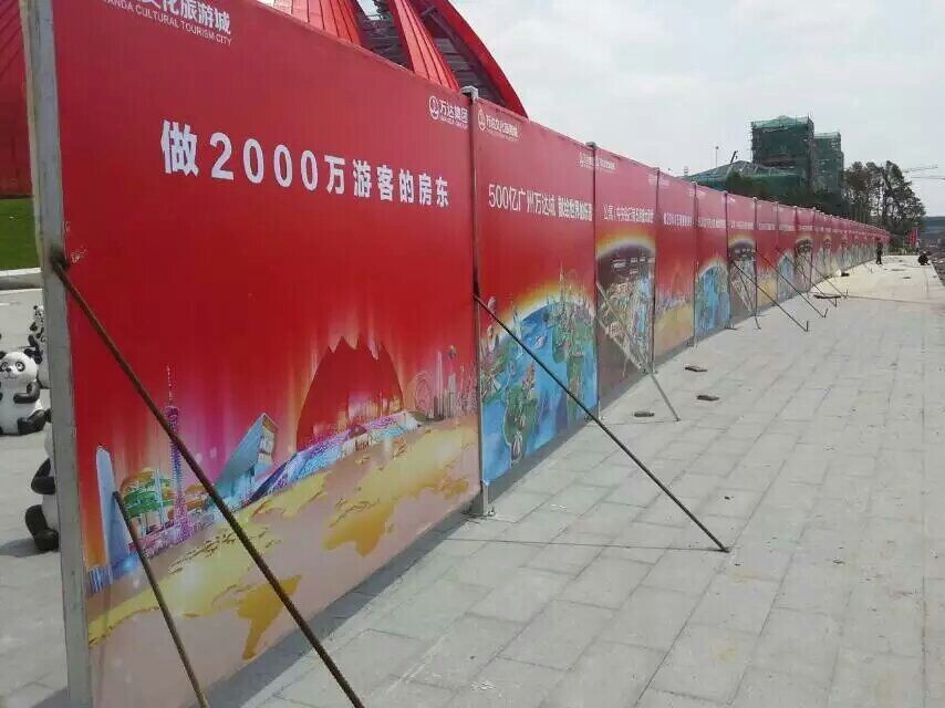 4、所有者(使用者)可在彩鋼夾心板工程圍擋上做文字或圖案廣告 ,并可出租廣告 位,充分利用提升空間價值。