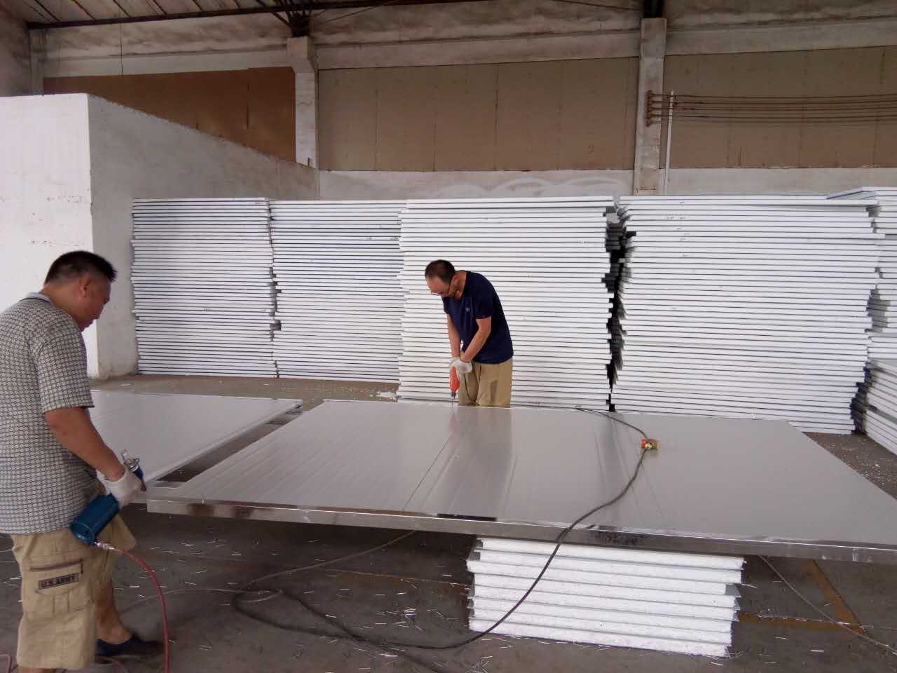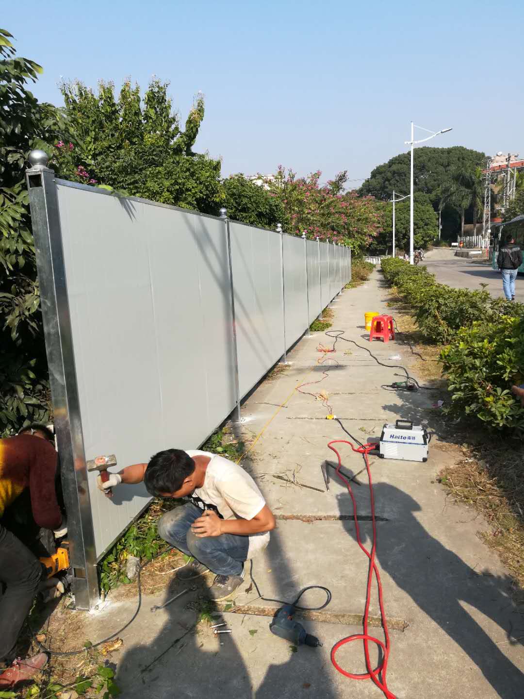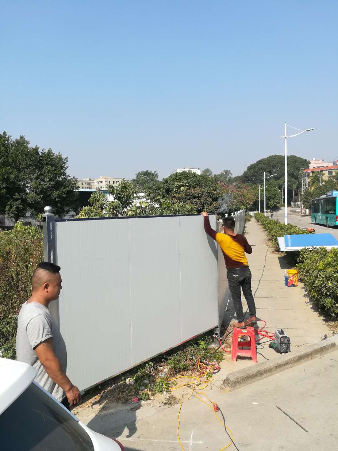 相鄰圍擋可以通過圍擋板兩側(cè)的槽鋼嵌入立柱槽位,用自攻螺絲固定。泡沫夾芯板外形美觀,色澤艷麗,整體效果好,它集承重,保溫,防水于一體,且無需二次裝修,是一種用途廣泛,特別是在對于建筑工地的臨時設(shè)施如辦公室,倉庫,