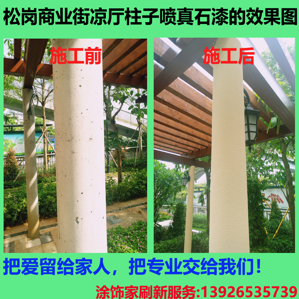 深圳市涂飾家涂裝科技有限公司是一家專業(yè)從事民用建筑涂料涂裝施工、涂裝工程管理、建筑涂料銷售為一體的專業(yè)化,施工型企業(yè)。公司具備雄厚的技術(shù)實力,擁有10余個各類型涂料 施工班組,近200名一線施工工人且全員擁有建筑涂料涂裝行業(yè)協(xié)會及合作涂料企業(yè)頒發(fā)的資質(zhì)證書和上崗證等。長期承接社區(qū)公園,商業(yè)休閑街 旅游景區(qū)門廳 柱子噴漆及翻新工程,酒店外墻翻新工程別墅.廠房.學校.自建房.門面房.外墻翻新.外墻防水.外墻改造.外墻真石漆.質(zhì)感涂料,浮雕漆,仿石漆.噴砂,水包水信心石漆,內(nèi)外墻涂料,氟碳漆等包工包料一條龍!專業(yè)團隊專業(yè)技術(shù)打造出精品工程。