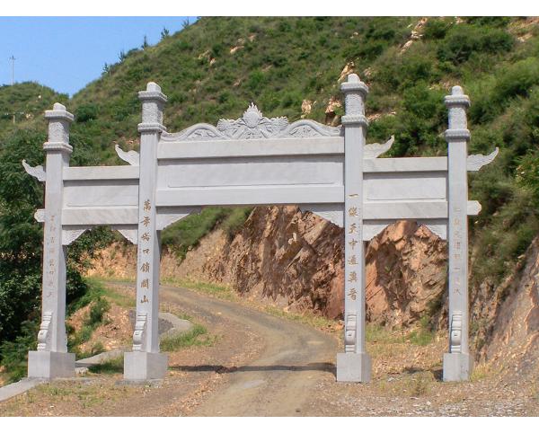 用于宗教祭祀的牌坊主要是寺廟前的牌坊和陵墓神道牌坊。香山臥佛 寺牌坊榜文是“同參密藏”,牛街清真寺牌坊榜文“達(dá)天俊路”,表達(dá)的是人們的崇拜心情。北京東岳廟前有琉璃牌坊,據(jù)說(shuō)是明代萬(wàn)歷年間,由宮中太監(jiān)們集資建造的。盡管歷經(jīng)了四百多年的風(fēng)雨滄桑,但這座三間四柱七樓的牌樓依然保存完好。牌樓正間上方的石匾寬2.8米,高0.9米,榜文南面是“秩祀岱宗”,北面是“永延帝祚”,既有地方標(biāo)志,也有祝愿。這類(lèi)牌坊數(shù)量眾多。