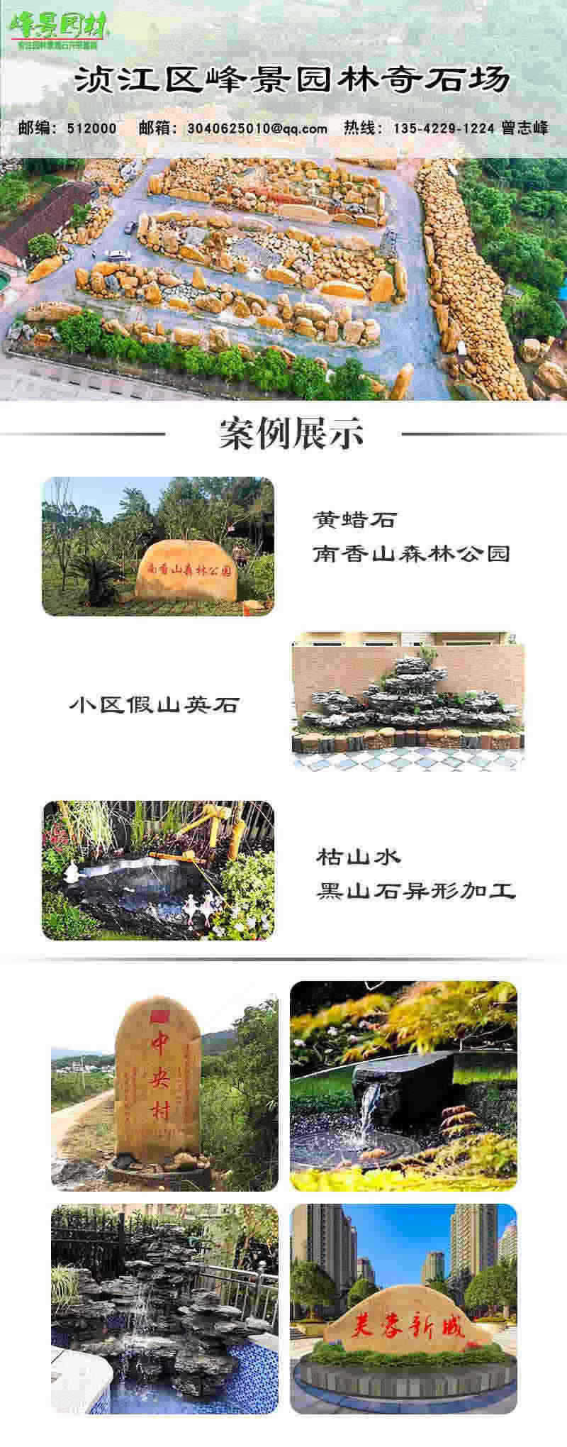 園林置石在現(xiàn)代園林設計中應用越來越廣泛,在景觀設計中,園林置石的使用十很靈活的,沒有固定的模式,不同的形狀,不同大小,不同色彩的石頭點綴在不同廠家可以成就一道靚麗的風景-------良好園林常年供應大量景觀置石,園林景觀石,風景石,刻字石,黃蠟石等石材,規(guī)格可自行挑選,批發(fā)零售均可,歡迎致電