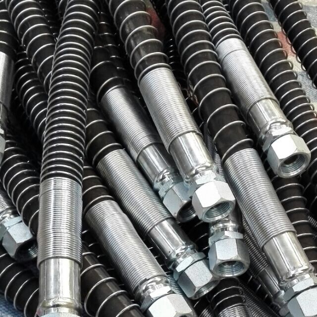 高壓鋼絲增強(qiáng)液壓膠管主要用于礦井液壓支架、油田開采,適宜于工程建筑、起重運(yùn)輸、冶金鍛壓、礦山設(shè)備、船舶、注塑機(jī)械、農(nóng)業(yè)機(jī)械、各種機(jī)床以及各工業(yè)部門機(jī)械化、自動(dòng)化液壓系統(tǒng)中輸送具有一定壓力(較高壓力)和溫度的石油基(如礦物油、可溶性油、液壓油、燃油、潤(rùn)滑油)及水基液體(如乳化液、油水乳濁液、水)等和液體傳動(dòng)用,最高耐工作壓力可達(dá)70-100mpa。