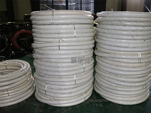 2、特點(diǎn):膠管外表面纏繞鍍鋅金屬螺旋線,能有效地增加管體強(qiáng)度,提高承壓能力。適用于工作條件復(fù)雜,對(duì)安 全作業(yè)有較高要求場(chǎng)合使用。