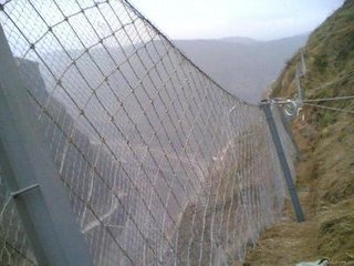 被動防護是由鋼絲繩網、環(huán)形網、(需攔截小塊落石時附加一層鐵絲格柵)、固定系統(tǒng)(錨桿、拉錨繩、基座和支撐繩)減壓環(huán)和鋼柱四個主要部分構成。鋼柱和鋼絲繩網連接組合構成一個整體,對所防護的區(qū)域形成面防護,從而阻止崩塌巖石土體的下墜,起到邊坡防護作用。