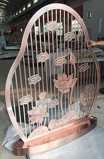 加工產(chǎn)品有;不銹鋼工程裝飾制品、不銹鋼屏風、不銹鋼板鏤空屏風、不銹鋼高檔酒架、不銹鋼工程裝飾異形件、不銹鋼電鍍展示架、不銹鋼電鍍工程門套、大門、不銹鋼金屬標識標牌、金屬logo、不銹鋼展示架、拉手、不銹鋼茶幾、不銹鋼護欄,不銹鋼立柱,不銹鋼吧臺,等。