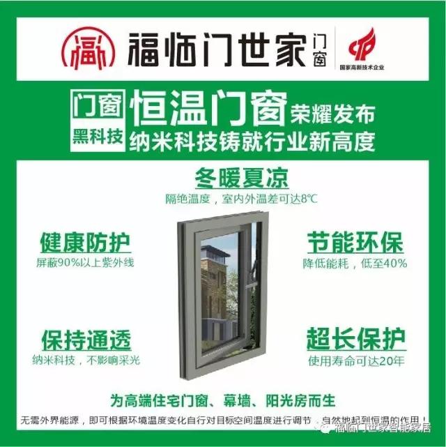 福臨門世家納米科技節(jié)能玻璃,采用福臨門世家獨(dú)有的納米科技技術(shù)在玻璃表面鍍制一層均勻納米材料制作而成,在保證良好的可見光透過率同時(shí)具有優(yōu)異的陽光控制和保溫隔熱特性。無需外界能源即可根據(jù)環(huán)境溫度變化自行調(diào)節(jié),自然起到“恒溫”的作用。