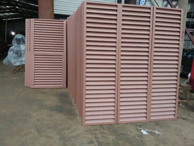 外墻百葉安 裝在外墻上既可以裝飾又能通風(fēng)和防水,既可以裝飾高檔小區(qū)可做空調(diào)機(jī)外罩,外型美觀。外墻百葉采用高強(qiáng)度鋁合金材料制作而成,具有強(qiáng)度高、易安 裝、外形美觀等特點(diǎn)。其主體結(jié)構(gòu)根據(jù)室外空調(diào)主機(jī)尺寸定做為開口框架形式,有利于氣流的流動,減少風(fēng)力對框架的直接作用力,框架之間百葉的連接,大大增加外墻空調(diào)百葉框架的強(qiáng)度?朔^去大面積外墻百葉受風(fēng)力或氣壓影響出現(xiàn)的脫落現(xiàn)象。廣泛用于美化小區(qū)樓盤,遮掩室外空調(diào)主機(jī),美化樓宇建筑的外觀。