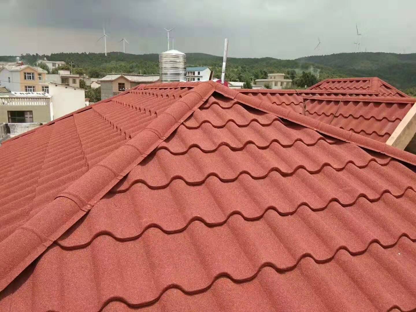 彩石金屬瓦采用了獨(dú)特的防水、防風(fēng)的設(shè)計(jì)釘固安 裝技術(shù),瓦和瓦之間的吻合更加緊密,瓦和 屋面的連接更加堅(jiān)固,使其屋面系統(tǒng)具有的抗御大風(fēng)、大雪、大雨的能力。厚度和重量僅相當(dāng)于普通水泥、陶土瓦的1/6左右,非常輕便,而且容易剪切和彎 折,更有配套的節(jié)點(diǎn)配件,使安 裝更加簡便、快捷、容易,在高層建筑和坡度很大的建筑上也可以很方便的施工。