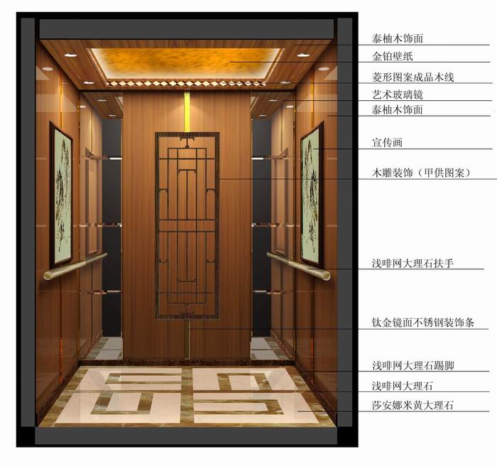 北京中創(chuàng)凌宇電梯裝飾有限公司以生產(chǎn)經(jīng)營(yíng)電梯裝飾及電梯配套產(chǎn)品主,產(chǎn)品有:豪華電梯裝飾、觀光電梯裝潢、自動(dòng)扶梯外裝飾及吊頂制作、各類扶手制造、廳轎門和小門套及前壁的改包制造。公司選材精良,采用進(jìn)口不銹鋼,特殊工藝板(蝕刻板、發(fā)紋板、和紋板、砂面板、三維立體工藝板等),進(jìn)口木材,進(jìn)口大理石等綠色環(huán)保裝飾用材料。我司長(zhǎng)期與奧的斯、三菱、迅達(dá)、蒂森、通力、日立、東芝等多家電梯品牌合作,公司下設(shè)體制完善,加工設(shè)備齊全,將滿足您的業(yè)務(wù)擴(kuò)展需要。