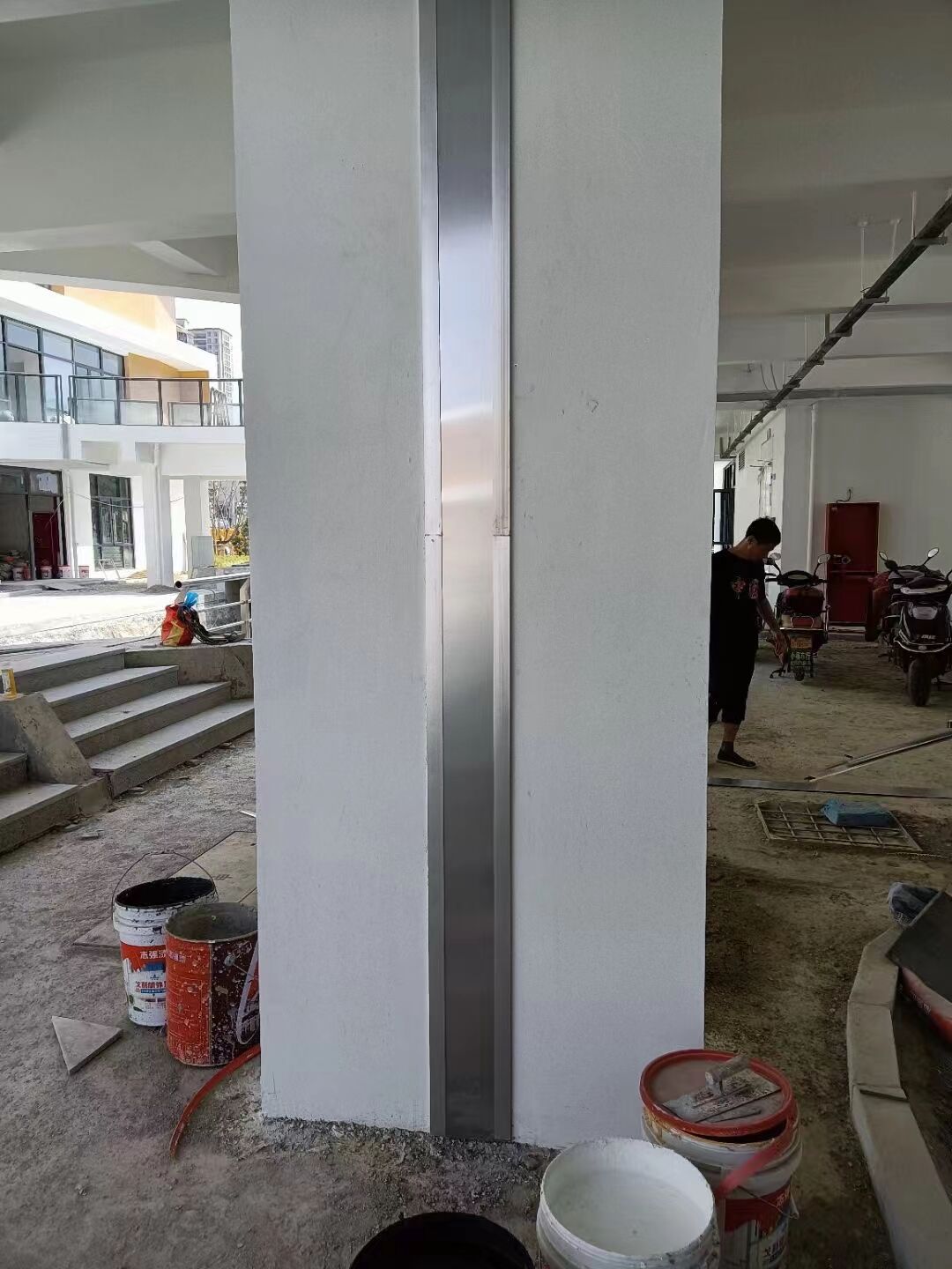 墻面蓋板型變形縫做法參照國標(biāo)圖集0401-3建筑變形縫圖集,由鋁合金型材基座,鋁合金蓋板(不銹鋼板,黃銅板)中控鍍鋅滑竿,不銹鋼螺絲,止水帶燈材料構(gòu)成。