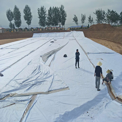 采用埋入法鋪設(shè)。土工布作為土工膜的保護(hù)層,使保護(hù)防滲層不受損壞。為減少紫外線照射,增加抗老化性能。施工中,首先要用料徑較小的砂土或粘土找平基面,然后再鋪設(shè),鋪設(shè)時(shí)不要繃得太緊,兩端埋入土體部分呈波紋狀,最后在所鋪的一布一膜上用細(xì)砂或粘土鋪一層10cm左右過度層。砌上20-30cm塊石(作防沖保護(hù)層。施工時(shí),應(yīng)盡力避免石塊直接砸在上,是邊鋪膜邊進(jìn)行保護(hù)層的施工。一布一膜與周邊結(jié)構(gòu)物連接應(yīng)采用膨脹螺栓和鋼板壓條錨固,連接部位要涂刷乳化瀝青(厚2mm)粘接,以防該處發(fā)生滲漏。施工接縫處理是一個(gè)關(guān)鍵工序,直接影響防滲效果。一般接縫方式有:搭接:搭接寬度宜大于15cm;熱焊:宜于稍厚的土工膜基材,焊縫搭接寬度不小于5cm.
