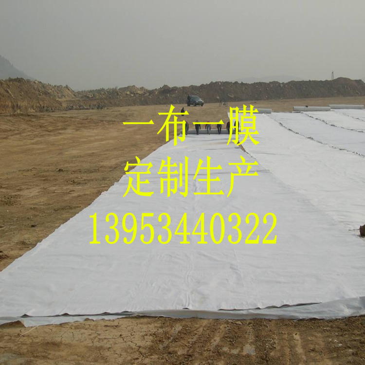 一布一膜是在無紡?fù)凉げ嫉囊贿厽釓?fù)合上一層聚乙烯薄膜而制成的土工防滲材料。用于一布一膜的布一般有:短纖土工布、長纖土工布、編織布.復(fù)合用的聚乙烯薄膜厚度從0.20毫米到1.50毫米,膜的顏色分為:白色和黑色。單位面積質(zhì)量從300克到2600克/平方米,