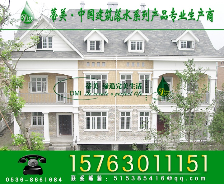 dmi建材有限公司經(jīng)營(yíng)的pvc落水系統(tǒng),產(chǎn)品材料采用尊貴的亞光白,無(wú)鉛配方的pvc材料并有本產(chǎn)品材料采用尊貴的亞光白,無(wú)鉛配方的pvc原材料,并有綠色環(huán)保的承諾。