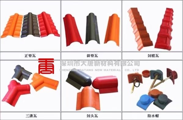 樹脂瓦配件:脊瓦,三通、堵頭、滴水板、螺絲等