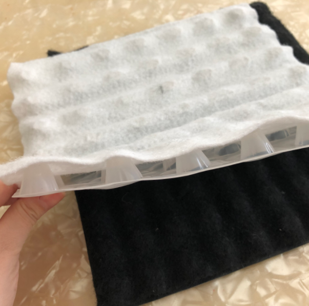 1、選材。由于排水板的用途廣泛,對市場上的材料應(yīng)合理選擇。選擇適當?shù)呐潘逵兄谔岣吖こ膛潘到y(tǒng)的性能,施工單位應(yīng)根據(jù)工程方案及圖紙的要求,合理選定排水板材料,如圖二。通過現(xiàn)場勘測技術(shù)參數(shù),對排水板的尺寸、材質(zhì)、結(jié)構(gòu)等綜合對比,選擇zui佳材料進行鋪設(shè)。