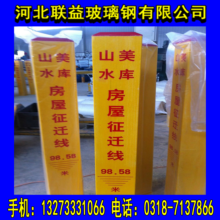 玻璃鋼標(biāo)志樁:玻璃鋼標(biāo)志樁是frp拉擠型材,其采用玻璃纖維及其制品作為增強(qiáng)材料,以合成樹脂作基體材料通過玻璃鋼拉擠機(jī)_一次性拉擠成型。經(jīng)高溫壓制而成?箾_擊,耐磨損,耐高溫,耐腐蝕,可以抗水、汽油、酒精、電解鹽 、醋酸 、鹽 酸 、鈉鉀 化合物、尿、瀝青,適合各種酸 堿 土壤。使用壽命長達(dá)30年。內(nèi)容采用絲網(wǎng)印刷技術(shù),警示效果好,不需要維護(hù)。重量輕,便于運(yùn)輸安 裝。無回收價值,自然防盜。
