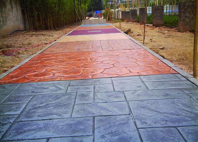 綠地景觀壓花地坪工程面積達(dá)25000平方米。景觀壓模路面根據(jù)公園設(shè)計(jì),顏色、花型與周邊環(huán)境相呼應(yīng),公園內(nèi)一個(gè)小型的廣場(chǎng)路面以仿古型的花紋展現(xiàn)在人們的眼前,符合周圍的意境;周邊的羊腸小道采用仿鵝卵石的壓印地坪,既呼應(yīng)周圍的環(huán)境又可以鍛煉人們的身體,放松忙碌一天的疲憊身體。